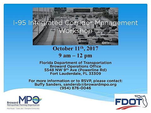 The Broward Metropolitan Planning Organization (MPO), Department of Transportation (FDOT), and its partners are looking to use an Integrated Corridor Management (ICM) approach to manage the I-95 corridor as a multimodal system and make operational decisions for the benefit of the corridor as a whole.